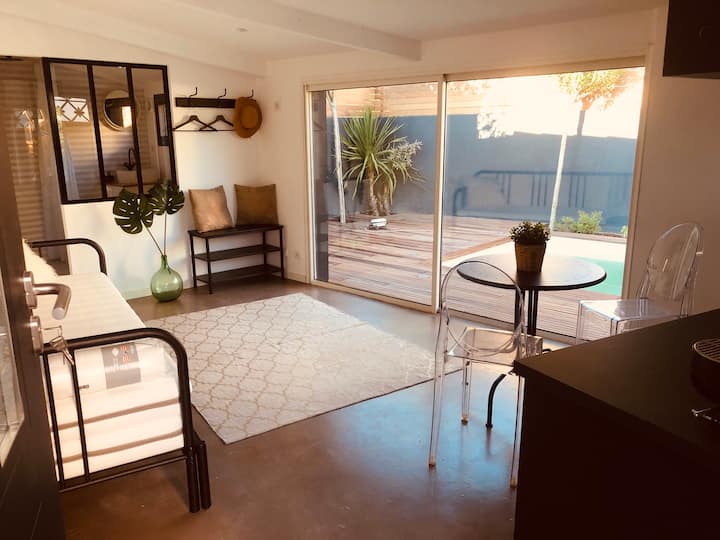Studio yenye bwawa la kuogelea tulivu huko Montpellier.