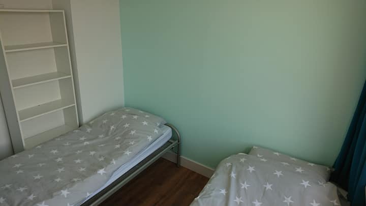 Nyumba yangu iko katika eneo la Neerbosch, umbali wa kilomita 4 kutoka katikati. Nyuma ya nyumba, unaweza kuweka baiskeli yako kwa usalama. Sehemu za maegesho hazilipishwi barabarani.
