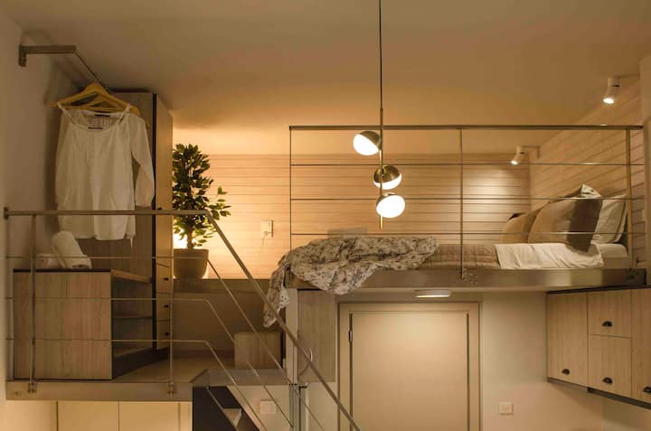 Studio mpya iliyokarabatiwa kwa roshani na roshani 6