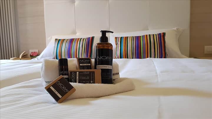 Nyumba kubwa iliyo na huduma za hoteli na teknolojia ya kukusaidia na kukuruhusu ufurahie muda wako unaostahili, tangu mwanzo. Mwishowe, Wenyeji wawili daima wako ndani ya nyumba, Cinzia na Nadia na wafanyakazi waliojitolea sana kwa ukarimu, daima watakufanya uhisi umekaribishwa na kutunzwa.