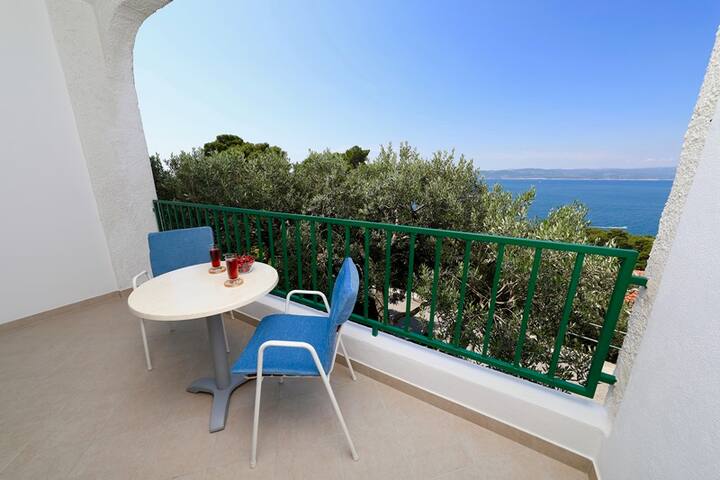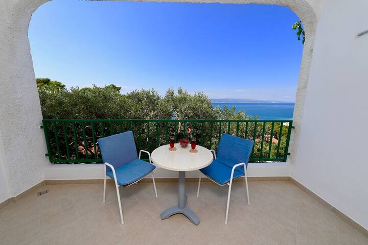 Fleti za Ribičić ziko katika kitongoji cha Brela kinachoitwa Soline kilichozungukwa na mamia ya miti ya zamani na mandhari nzuri ya visiwa vya Brač na Hvar na mwonekano wa kuvutia wa milima ya Biokovo - Hifadhi ya Asili.