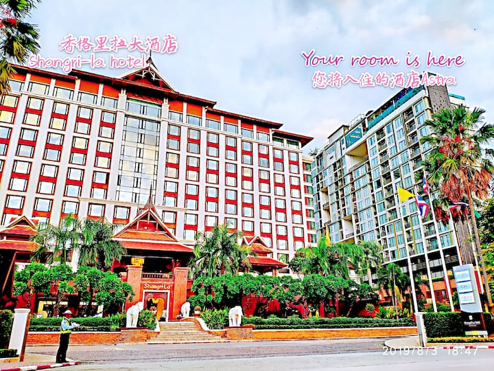 Tumekuandalia chumba safi, safi, angavu, tulivu kwa ajili yako. Ni fleti kubwa katika fleti moja. Eneo halisi la matumizi ya chumba ni hadi mraba 51. Chumba cha kulala kina kitanda kikubwa na matandiko mazuri na laini, bafu kubwa lina beseni zuri la kuogea na harufu nzuri. Kuna televisheni, mashine ya kufulia, chumba cha oveni ya mikrowevu, friji kubwa na mke. amesimama kwenye roshani ili kufurahia uzuri wa mlevi wa Shangri-La wa atriamu, na miti mirefu yenye kunguni. Wakati huohuo pia inakupa mlima mrefu zaidi huko Chiang Mai bila bwawa la kuteleza mawimbini, bustani za angani na ili uweze kutazama nyota kwenye paa kwenye ghorofa ya juu, burudani, jengo lote refu zaidi la Chiang Mai, linaloangalia jiji zima la Chiang Mai, linaloangalia Mlima Doi Suthep. Kuna vifaa kwa ajili ya chumba bora cha mazoezi, chumba cha sauna, unaweza kufurahia uzuri wa Chiang Mai, wakati upande wa mazoezi ya viungo utakuletea thamani ya kipekee ya uzoefu wa kuishi.