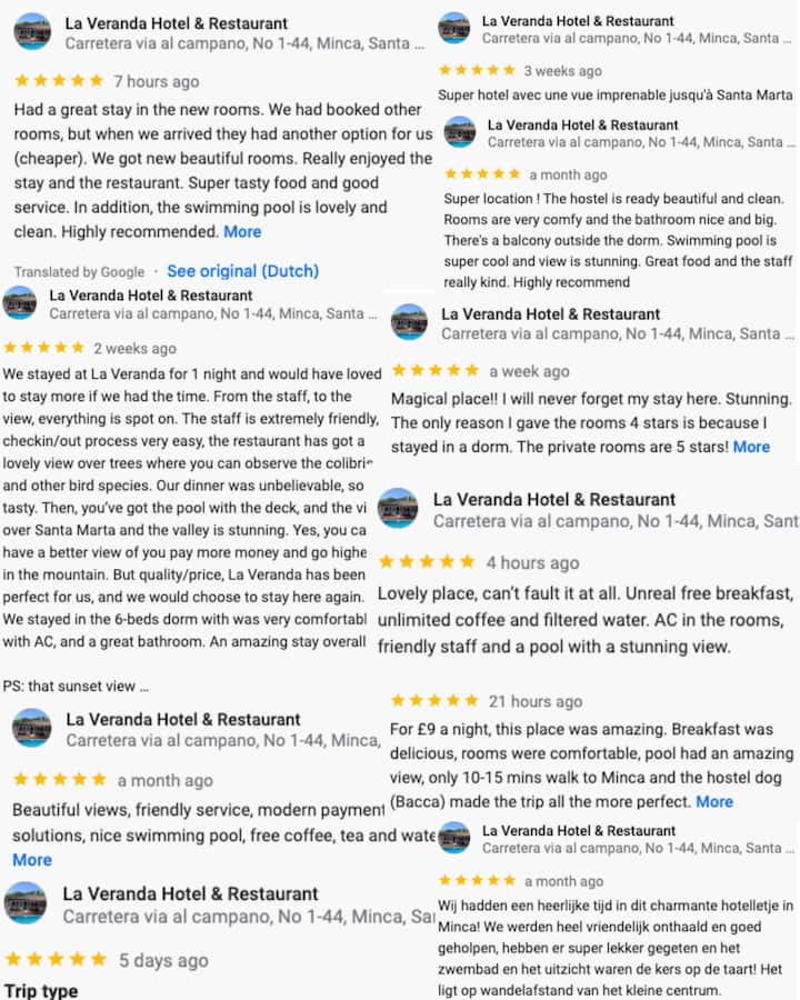 Karibu kwenye Hoteli na Mkahawa wa La Veranda, hoteli yetu nzuri huko Minca, Kolombia. Umbali wa kutembea kwa dakika 15 kutoka mji wa Minca. Tunatoa vyumba vya kujitegemea na vya pamoja, vyote vikiwa na mabafu ya kujitegemea.