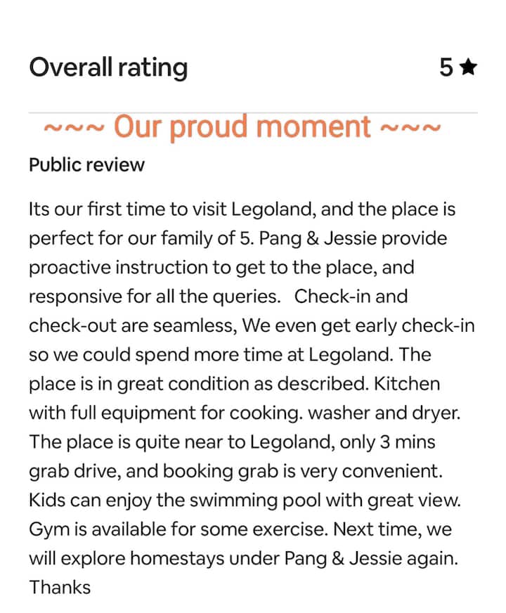 Grand Medini(2BR)FamilySuite ~3 min drive Legoland