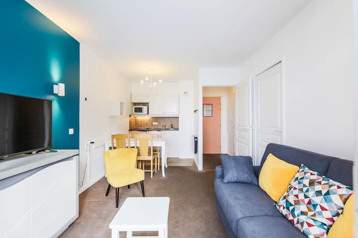 Faida za nyumba yako ya kupangisha: Fleti yenye vyumba 2 yenye mwangaza kwa ajili ya Watu 4 yenye mandhari ya milima na ufikiaji wa bwawa la kuogelea la makazi.