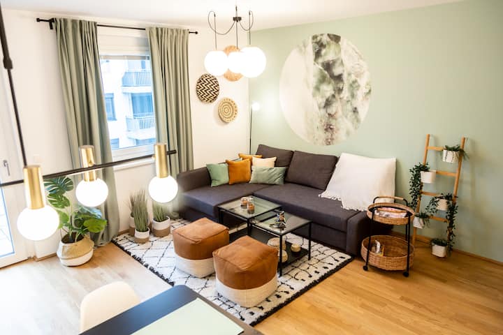 Dakika 15 hadi katikati: fleti yenye starehe ya kijani kibichi