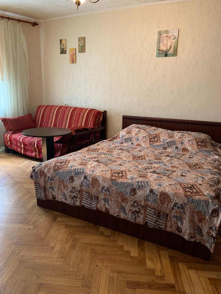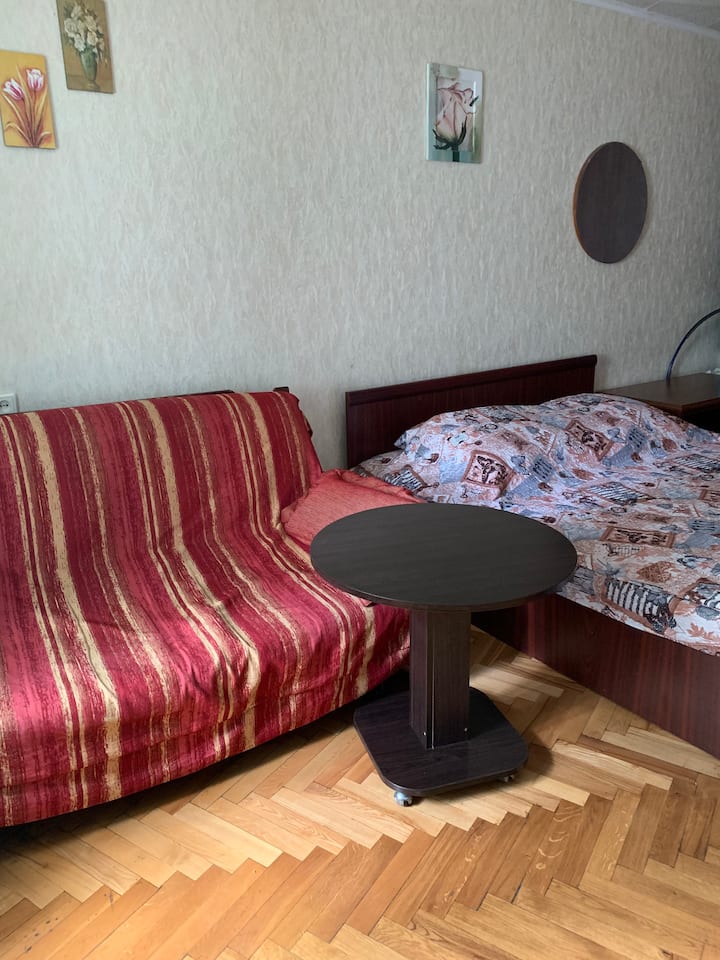 Ikiwa na roshani, fleti yenye vyumba katikati ya Sichovykh Riflemen.