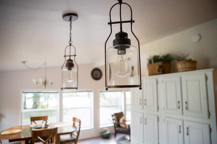 Katika ua wa nyuma, utapata shimo kubwa la moto lenye mabenchi maalum ya kuni karibu nayo, eneo la baa ya nje ya kijijini, beseni letu la maji moto la mtu 7 na viti vya nyasi, vyote vikiwashwa na taa zetu tamu za nje! Pia tuna sitaha iliyofunikwa na fanicha ya baraza na meza kwa ajili ya usiku mzuri nje. Ukitembea hadi kwenye ukingo wa ua wa nyuma, utaona njia yetu ndogo yenye alama, ambayo inaunganisha hadi kwenye njia ndefu zaidi nzuri ambayo huenda kwa maili kadhaa kupitia msitu wa kitaifa na kuelekea Rainier ikiwa utatembea kwa muda wa kutosha. Ni rahisi kutembea kwa dakika 6 kwenye njia hii kwenda kwenye maporomoko ya maji mazuri, madogo na yenye utulivu ambapo unaweza kufurahia kahawa yako ya asubuhi.