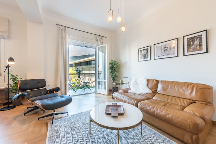Fleti ya kifahari ya vyumba 2 vya kulala yenye mandhari ya Jumba la Makumbusho la Acrop