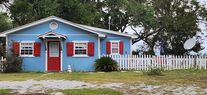 Wayne na mimi sote ni walimu wastaafu wa shule ya upili. Sasa ninatumia muda wangu mwingi kuuza mali isiyohamishika (mimi ni Alabama Realtor aliye na leseni) na kusimamia mali wakati Wayne, mtu wa mkono wa ziada, anaendelea na matengenezo na matengenezo. Tulilea familia iliyochanganywa ya watoto saba hapa kwenye Little Lagoon ambapo tumeishi kwa miaka 33 iliyopita.