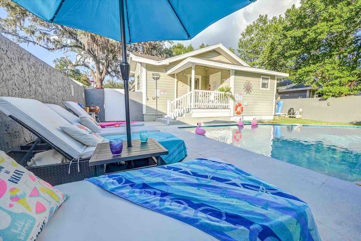 Pata uzoefu wa haiba na starehe ya Flamingo Haven, nyumba yetu ya kipekee isiyo na ghorofa ya kihistoria ya mwaka 1926 iliyo katikati ya Old Seminole Heights, Tampa. Ukiwa na mandhari ya kupendeza ya pwani ya flamingo, makao yetu ya faragha hutoa mchanganyiko kamili wa uzuri, starehe na starehe. Changamkia mapumziko katika bwawa letu linalong 'aa, lenye joto na ufurahie mazingira tulivu ya kitongoji chetu, yaliyopambwa kwa mialoni mikubwa na mitaa yenye matofali ya kihistoria.