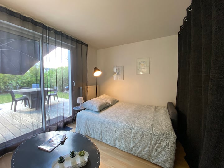 Studio na mtaro mkubwa kwenye Golf de BRUZ