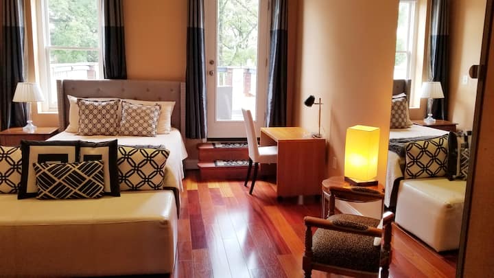 Chumba cha kulala w/ba ya kujitegemea na sitaha. Chaguo la Muda Mrefu