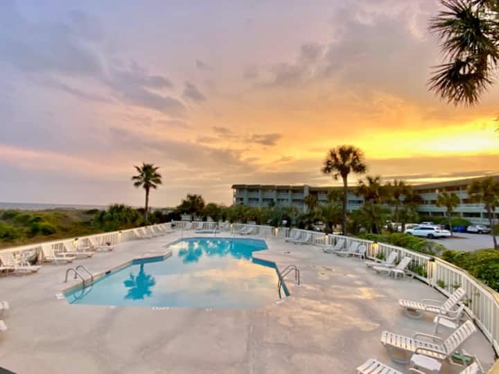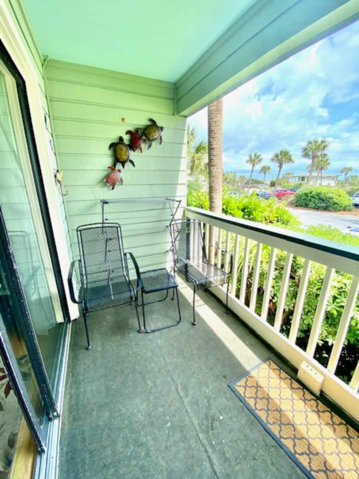 Kondo za Nyumba za Mbao za Baharini zinashiriki Bwawa la Jumuiya ikiwa ni pamoja na bwawa la kiddie, Kituo cha Kufua Sarafu na pia zina ufikiaji wa Gati la Uvuvi la Kujitegemea! Kondo hizi ziko katikati ya Ocean Blvd ambayo ni eneo zuri la kuwa umbali wa kutembea kwenda kwenye Migahawa ya Eneo Husika, Ununuzi wa Ufukweni, bustani ya kaunti, maduka ya aiskrimu, maisha ya usiku ya visiwani na kadhalika! Kondo za Nyumba ya Bahari ya Bahari kila futi za mraba 490 na zinajumuisha jengo la ghorofa tatu ambapo vitengo vyote vina roshani za kibinafsi zinazoangalia ufukwe na Bahari ya Atlantiki. Hili pia ndilo eneo pekee lililohifadhiwa kwenye kisiwa hicho = starehe katika usalama! Intaneti isiyotumia waya pia inapatikana. Njoo ujaribu bahati yako ya kuvua samaki kutoka kwenye gati la uvuvi la futi 1000 ambalo linafikika tu na wamiliki wa kondo na wageni au ufurahie matembezi ya kupumzika kwenye gati juu ya mawimbi yanayovunjika. Ununuzi, chakula kizuri, maduka ya aiskrimu, burudani za kila usiku, duka la vyakula na ofisi ya posta ni matembezi mafupi kutoka kwenye jengo hilo.