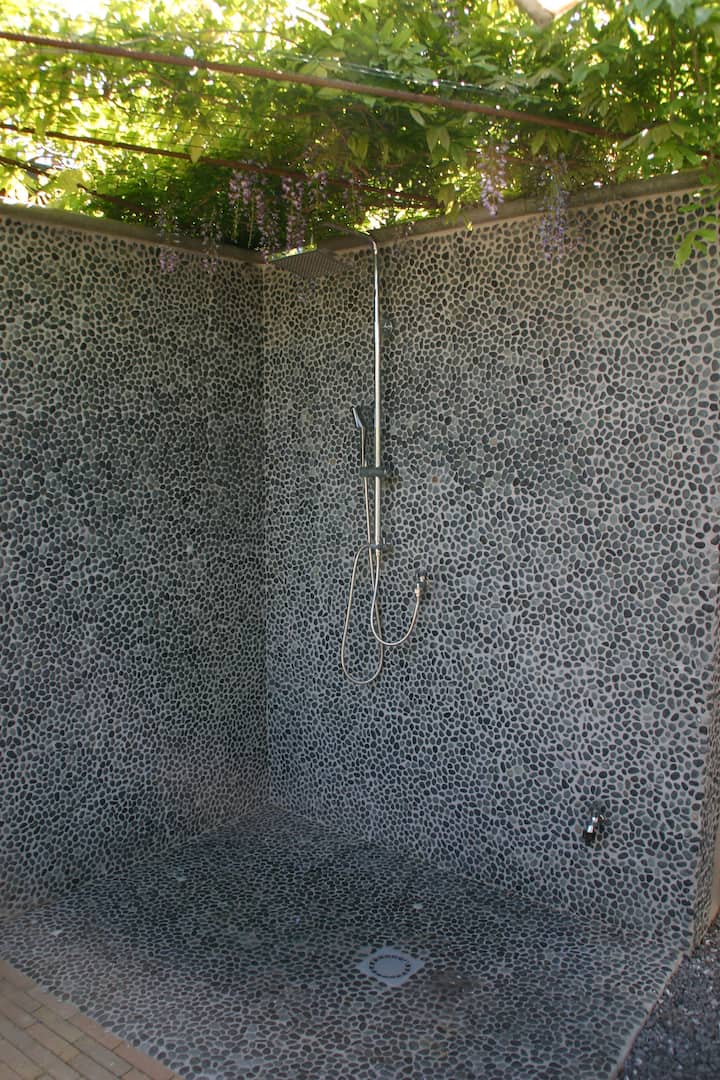 Starehe ukitumia bomba la mvua la nje na sauna.