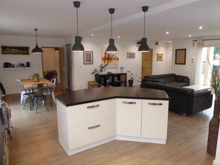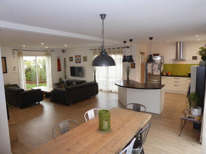 Habari, jina langu ni Sébastien na ninaishi katika nyumba hii ambayo niliijenga chini ya miaka 10 iliyopita. Ninaishi huko na mke wangu na watoto wawili. Nyumba hii ni angavu sana na iko katika kitongoji tulivu sana,