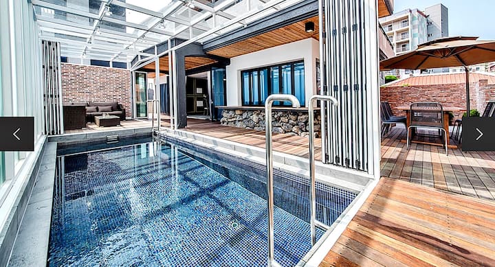 Nine_Private house hot water pool villa 80 pyeong, breakfast included, bedroom 4 + bathroom 3 * private pool + barbecue *