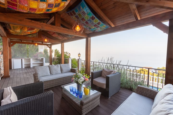 villa zaidi kuliko iliishi hadi maelezo yake na mazingira yake ya faragha na utulivu na maoni mazuri ya bahari na tulifurahia sana kukaa kwetu. Ni kubwa, ina starehe na ambience ya nyumbani lakini pia ina vifaa vya kutosha sana na kwa hakika ilikuwa safi. Tulikuwa na hali ya hewa ya kupendeza kwa Novemba na tulifurahia kukaa nje na kula katika maeneo ya mtaro ambayo yana jua mchana kutwa. Kwa bahati mbaya haikuwa na joto la kutosha kwa kuogelea lakini bwawa lilionekana kuwa la kuvutia sana... Kwa kweli tungeweza kurudi nyuma na kufikiria kuwa ni thamani nzuri sana ya pesa.