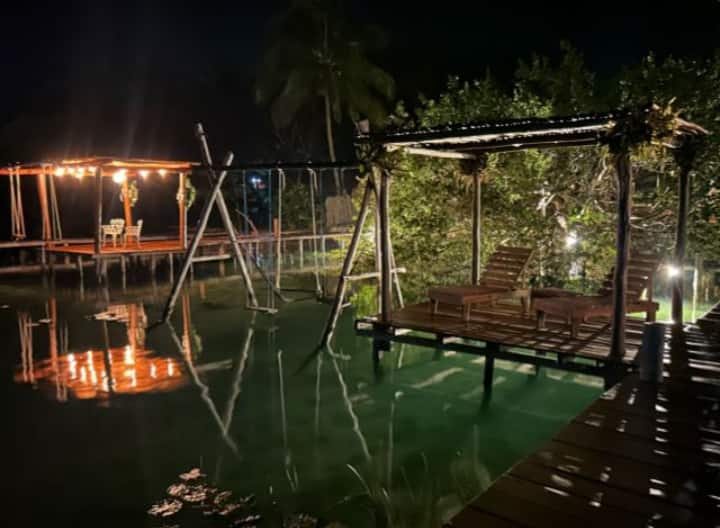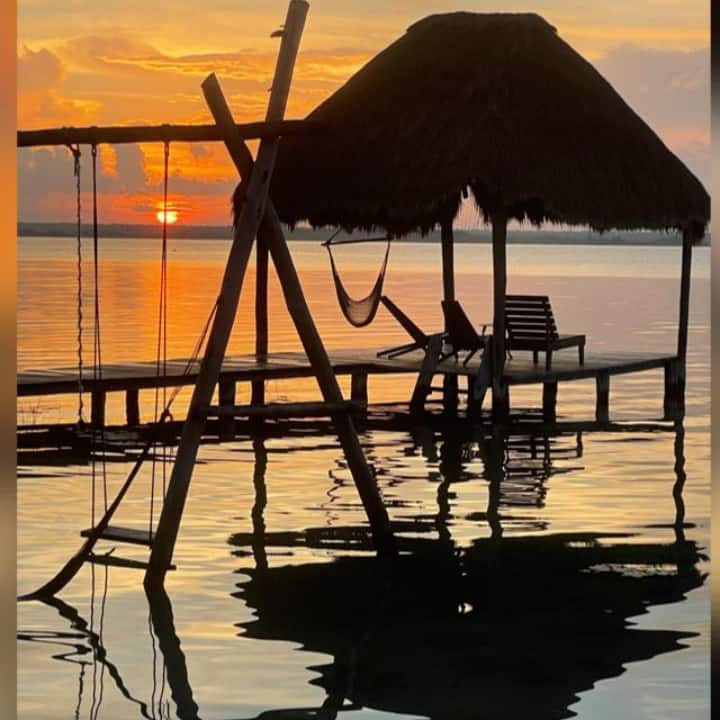 Nyumba hii iko kwenye Laguna de Bacalar.