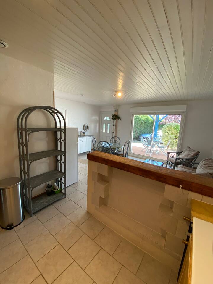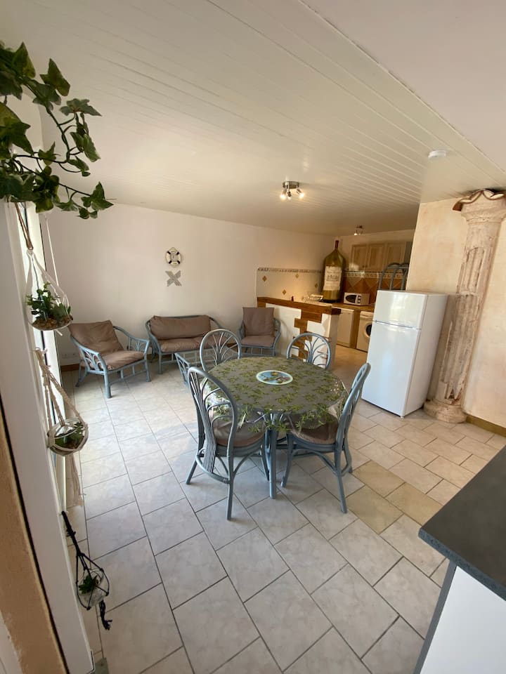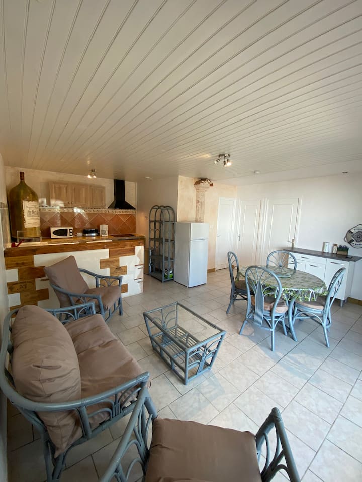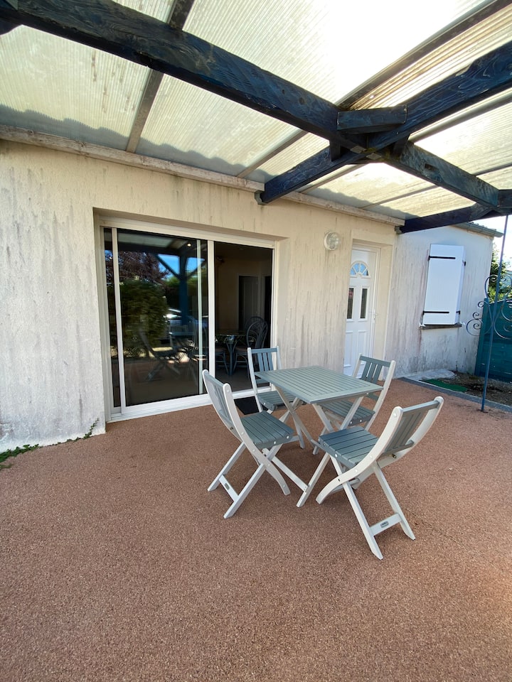 Nyumba iliyo na mtaro na baiskeli mita 350 kutoka ufukweni