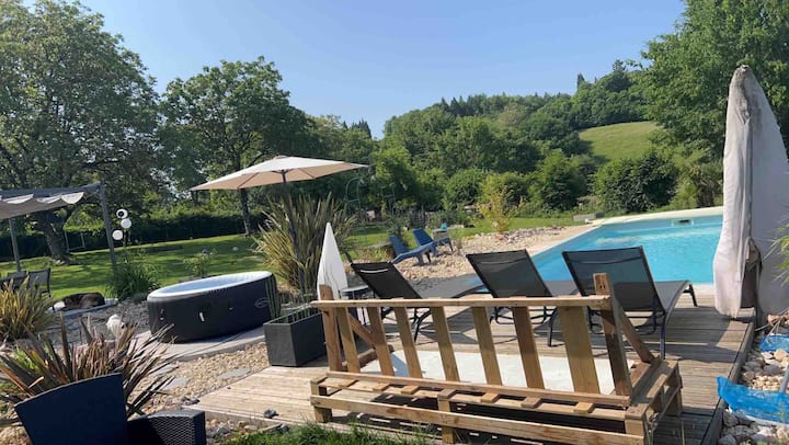 Chumba tulivu cha watu wawili kilicho na bwawa na spa