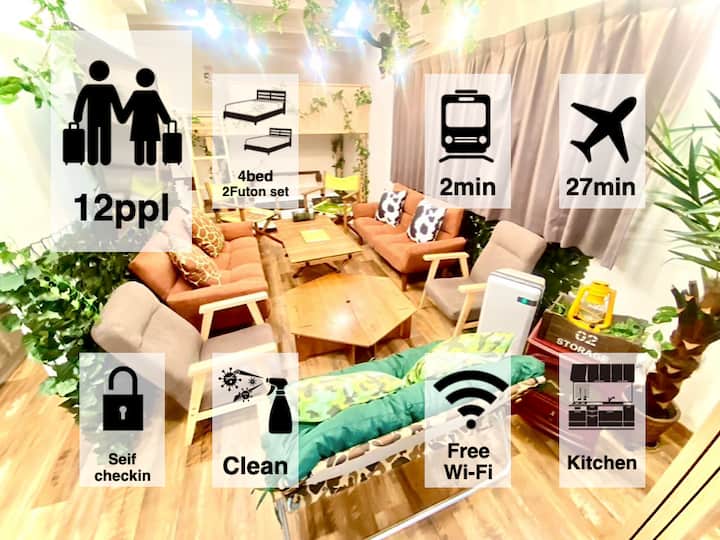 GlampingRm/12pax/54㎡1LDK/NishiOi dakika 2/Shinagawa1stp