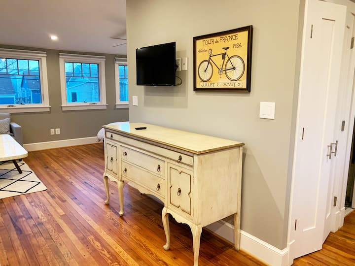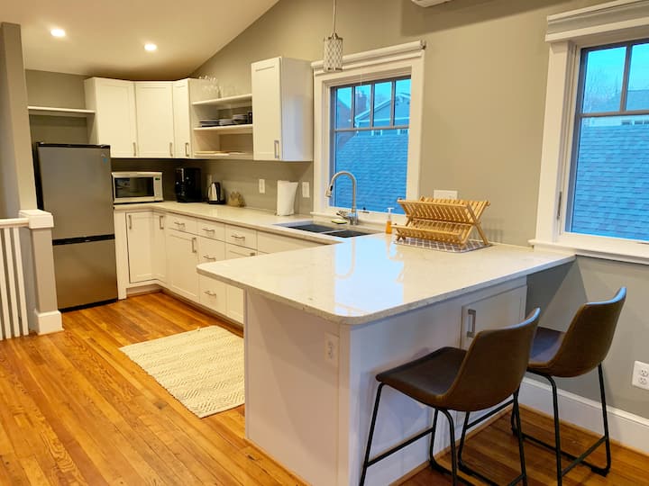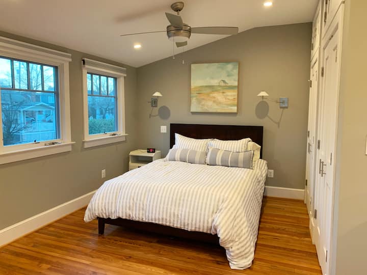 Del Ray iko "Mahali ambapo Mtaa Mkuu Bado Upo" na Mlima Vernon Avenue ulio na maduka ya kujitegemea, Soko la Del Ray Famers na mandhari ya mkahawa inayostawi. Wakati wetu wa kutembelea ni kwa ajili ya chakula cha mchana cha wikendi. Angalia chapisho letu la blogu kwa mapendekezo kuhusu matangazo bora ya chakula cha mchana, ikiwa ni pamoja na kadhaa ambazo ziko Del Ray. Del Ray pia hujulikana kama "Well Ray" kwa jumuiya yake kubwa ya biashara kamili ya afya.
