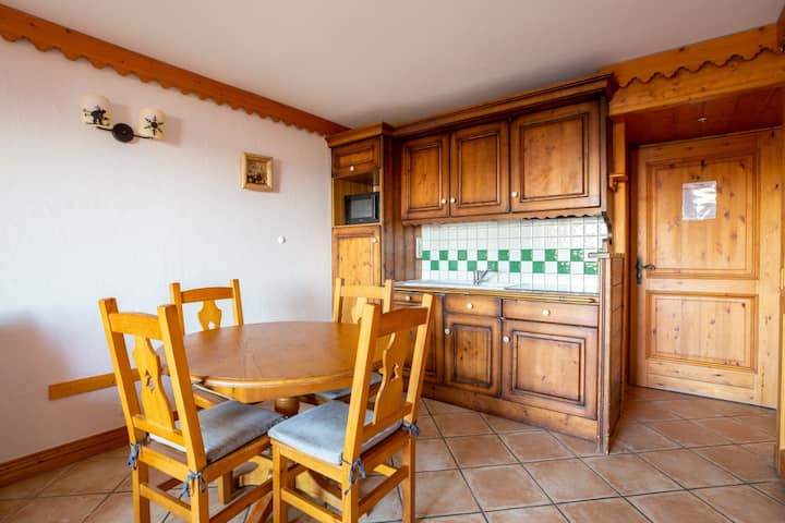 Ski-in/ski-out residence with numerous facilities: swimming pool, sauna, hammam. Resort center a few steps away.