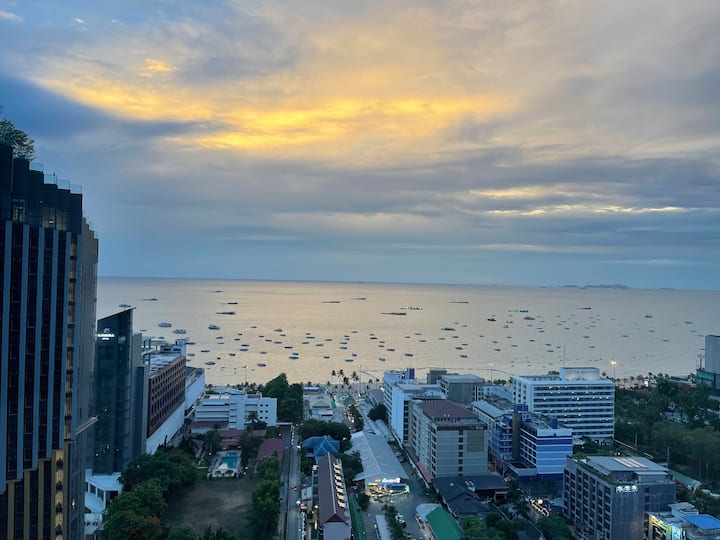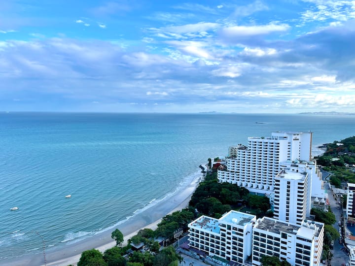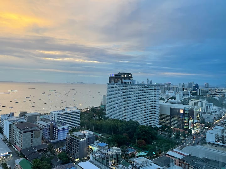 Fleti ina mwonekano mzuri wa bahari uliozungukwa na pande tatu za bahari, ikiangalia maeneo mawili maarufu ya Pattaya - Pattaya Bay na Cozy beach Bay.Upande wa mbele wa fleti unatazama mwonekano mzuri wa bahari unaoangalia Ghuba ya Thailand, upande wa kulia wa fleti unakabiliwa na usanifu wa mijini wa Pattaya Bay, ufukwe, vitabu vizuri vya bahari, na upande mwingine wa fleti unatazama mwonekano wa jiji la Jomtien Beach huko Pattaya na ukanda mzuri wa pwani.Furahia mwonekano mzuri wa bahari hapa, kana kwamba uko katika eneo la hadithi.Huu ndio mwonekano bora wa machweo kwenye Ghuba ya Thailand na mwonekano ni mzuri na hauwezi kusahaulika kwa maisha.Kwa mwonekano mzuri wa bahari na eneo zuri, ninaogopa hutapata ya pili ikiwa utaangalia nchini Thailand.