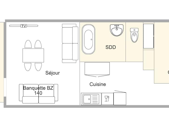 Nyumba ya kupangisha ya Studio Les Saisies kwa ajili ya watu 5, eneo la kati