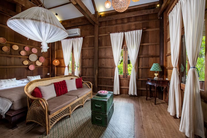 Mimi ni Mengphat, mmiliki wa Phum Khmer Lodge. Mimi ni shauku kwa usanifu wa jadi wa nyumba za mbao za Khmer. Nilitumia miaka mingi kukusanya mbao kutoka kwenye nyumba za zamani kutupwa, kote Kambodia, nikijifunza kuhusu mitindo tofauti. Kisha nikaamua kuunda hoteli ya kipekee, sawa na kijiji. Ilichukua karibu miaka 6 – na kuni kutoka nyumba 28 za zamani – kujenga nyumba 6 za Lodge. Utaratibu huu umeruhusu kuni zirejeshwe wakati bado zinahifadhi misitu.