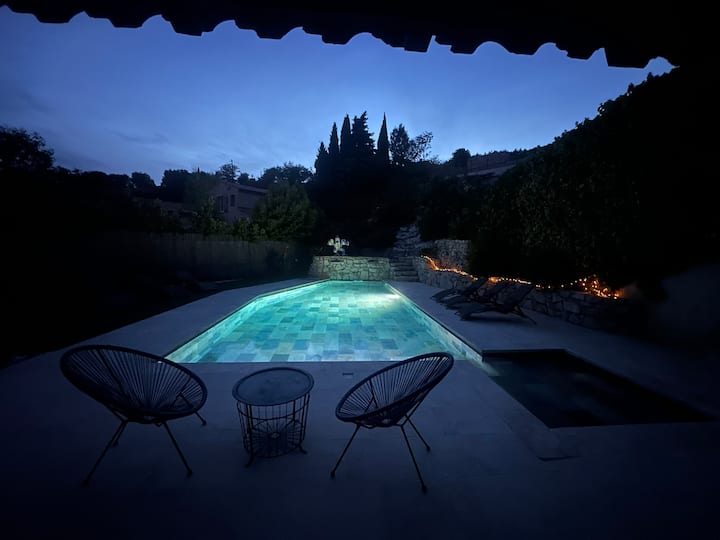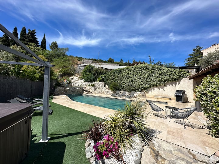 Vila nzuri yenye starehe, bwawa lenye joto la beseni la maji moto