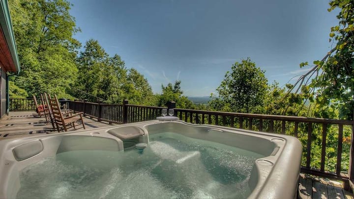 Grand View ni mapumziko ya kupendeza ya mlima yanayotoa mandhari ya kupendeza ya masafa marefu ya Kaskazini mwa Georgia. Kuangalia Mercier Orchards. Ina sitaha kubwa, ukumbi uliochunguzwa na beseni la maji moto kwa ajili ya mapumziko. Ndani, furahia sehemu ya kuishi yenye samani mahususi, jiko la kifahari na meko ya kuni yenye starehe. Nyumba ya mbao ina vyumba vinne vya kulala vya kujitegemea, ikiwemo chumba kikuu. Pamoja na mazingira yake ya kuvutia, Grand View ni likizo bora ya kufanya kumbukumbu za kudumu.