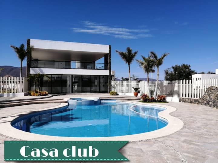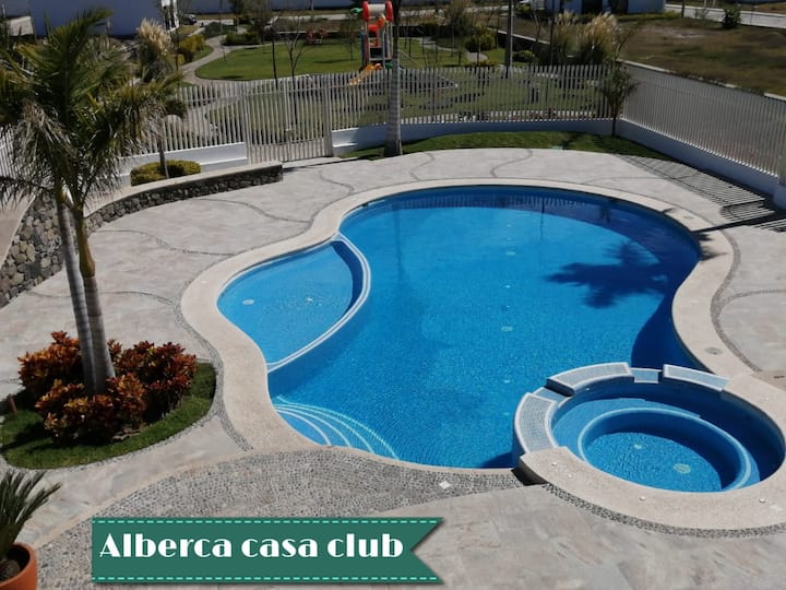 nyumba nzuri kwa ajili ya machafuko na wakati wa starehe sana, iwe na familia au marafiki, ni nyumba ya mashambani ambayo iko katika lagoon ya Chapala karibu na Jocotepec, kabla ya kufika kwenye mji wa San Cristobal Zapotitlan dakika 60 tu kutoka Guadalajara. ni kitongoji ambacho kina usalama wa kibinafsi saa 24 na pia kiko kwenye ufukwe wa Lago, na nyumba ya kilabu iliyo na bwawa.