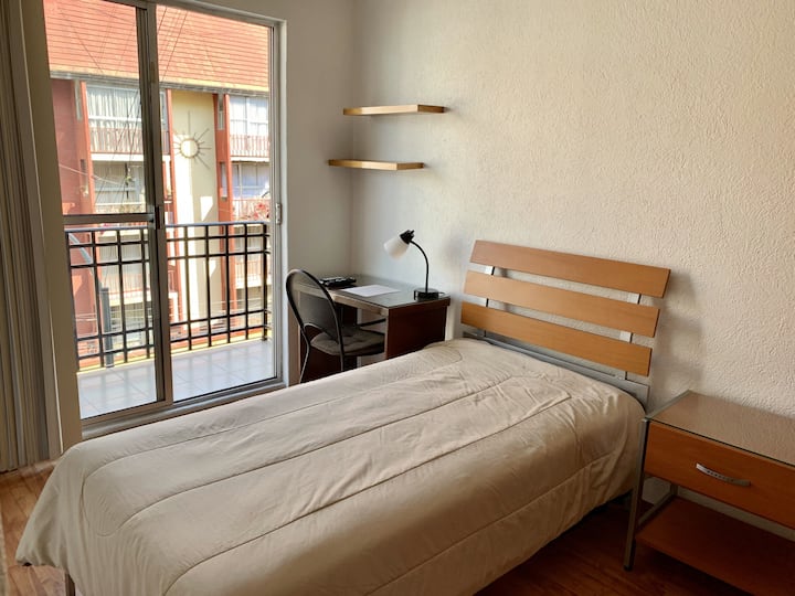 HABITACION CON BALCON,BAÑO,ESTACIONAMIENTO PRIVADO