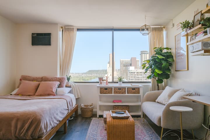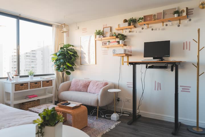 Maegesho ya $20! Studio nzuri ya Waikiki iliyo na sehemu ya Kufanyia Kazi