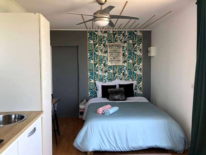 Habari, mimi ni Valerie na ninatoka Reunion. Nimekuandalia cocoon ambapo starehe na usafi upo ili kufanya ukaaji wako uwe wa kustarehesha. Eneo lako ni huru kabisa na lina mlango wake mwenyewe ili kuhakikisha utulivu wako ni wa jumla. Ninatazamia kwa hamu