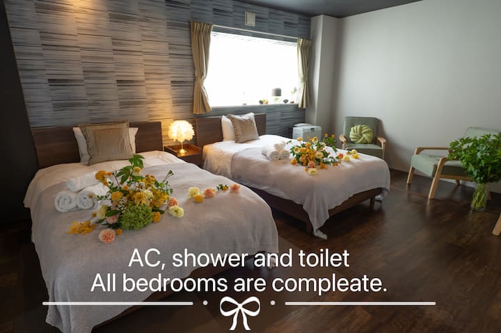 Nyumba 24 3F/Vyumba vyote vina viyoyozi kamili/108 ¥ ghorofa ya 3 ya kupangisha/vyumba 3 vya kulala + mabafu 2/maegesho 1 bila ada/dakika 7 kwa kituo cha treni ya chini ya ardhi