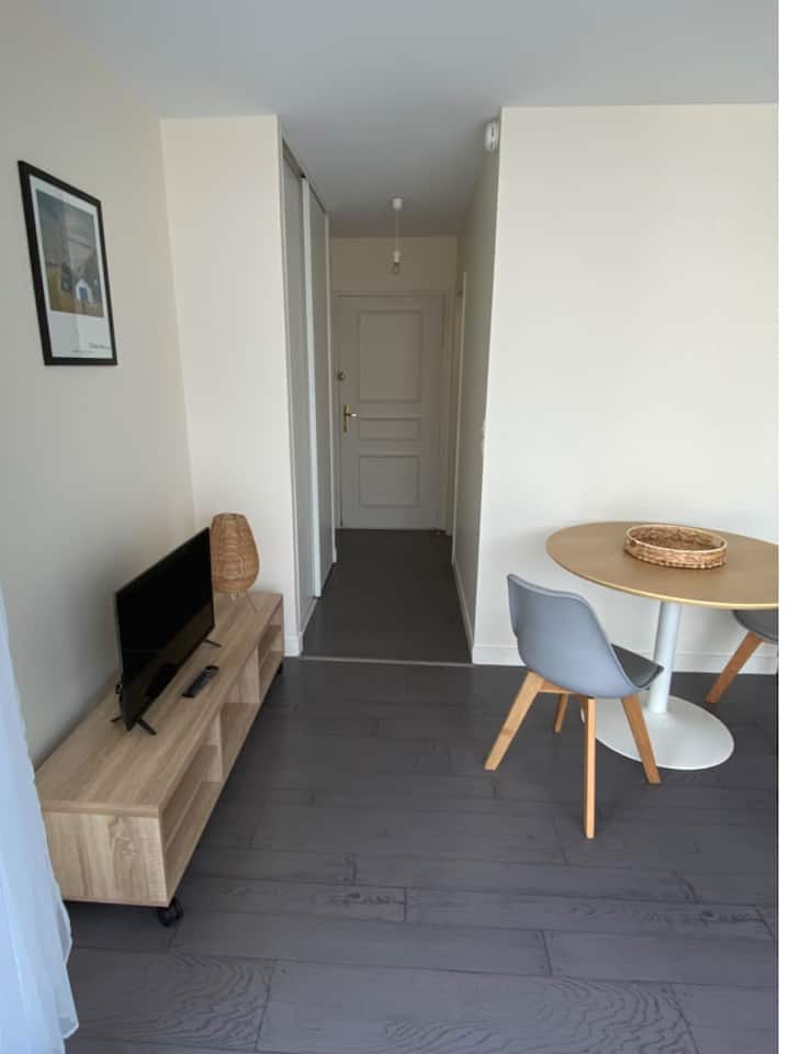 Studio yenye roshani yenye fukwe za mita 200 na katikati ya jiji
