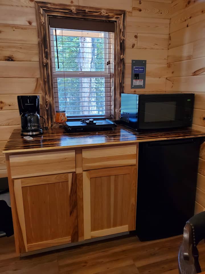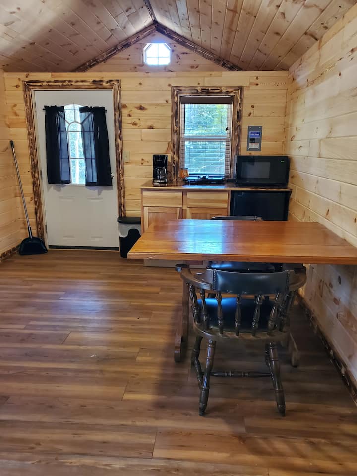 NINI cha KULETA...kahawa na vichujio, viti vya ziada vya kambi (tuna viti 2 huko kwa ajili yako na viti 2 vya baraza). Pia utahitaji mkaa wako mwenyewe ikiwa unapanga kutumia grili. Buti za Muck ni nzuri kutembea kwenye mkondo kwa sababu kuna kina kirefu na mara nyingi utaona samaki kwenye mkondo. Tunaweka jug ya maji (galoni 5) kwenye baraza na pia kwa ajili ya kusafisha mikono, Maji ya ziada hayaumii kuwa nayo. Kuna kifaa cha kucheza TV/DVD kwenye nyumba ya mbao, hakuna kebo, beba DVD zako mwenyewe. Matandiko yanatolewa. Kuna skillet ya umeme na baadhi ya vyombo vya msingi vya kupikia vya ndani na nje. Nyumba za mbao zimeunganishwa kwenye machapisho ya kambi ya umeme na zina feni ya dari, mikrowevu, friji ndogo, vyombo vyote vya msingi vya kupikia na grisi, sufuria ya kahawa. Tuna nyumba kamili ya kuoga inayopatikana na choo/chumba cha ubatili kinachofikika kwa wapiga kambi wetu ambacho ni umbali mfupi kutoka kwenye nyumba yako ya mbao. Bado tuko katika mchakato wa kuweka ishara/maelekezo/njia za kufikia hivyo taarifa itatumwa na maelezo ya kuingia kwani maboresho haya yaliongezwa mwishoni mwa Septemba 2022. Tafadhali beba taulo zako mwenyewe na safisha nguo. Tunatoa Shampuu ya Ubora Mzuri, Kiyoyozi, gel ya kuoga ya Gentle na sabuni ya mkono katika nyumba ya kuoga ya pamoja.