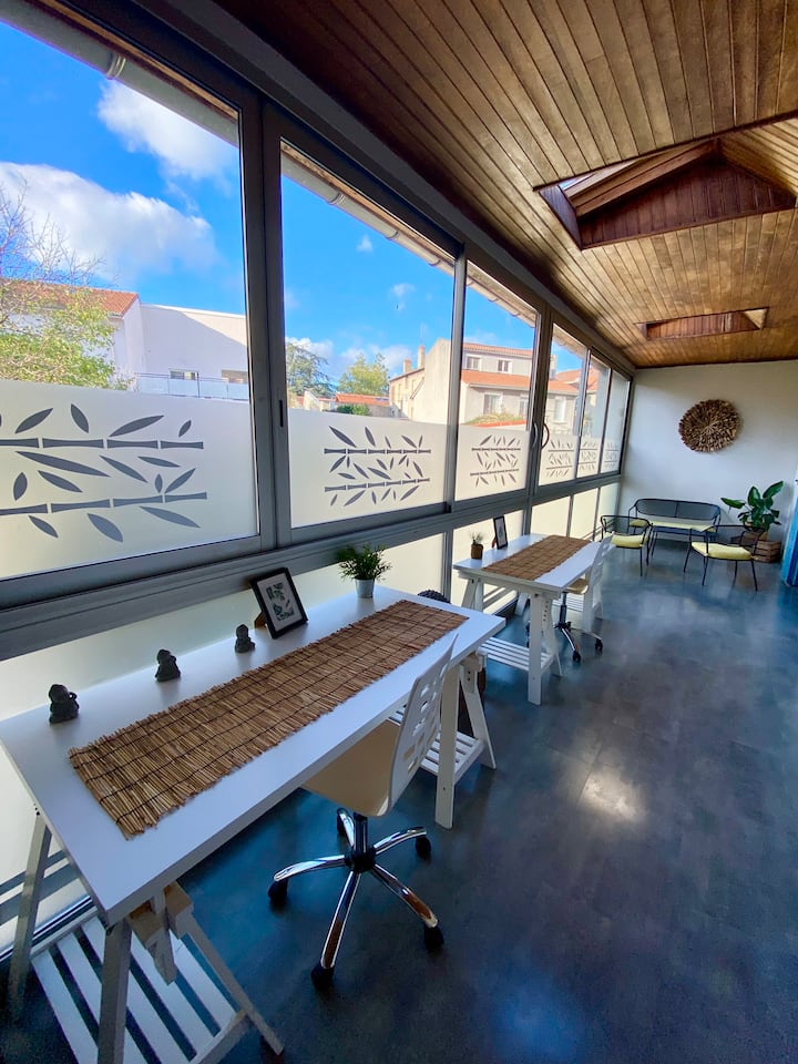 Eneo la pamoja lenye Wi-Fi inayofaa kwa ajili ya kufanya kazi.