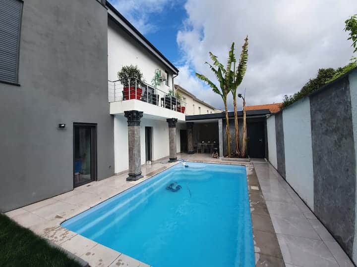Nyumba nzuri ya msanifu majengo iliyo na bwawa
