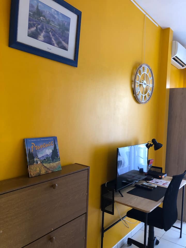 Studio ndogo yenye kiyoyozi hatua 2 kutoka Mnara wa Luma