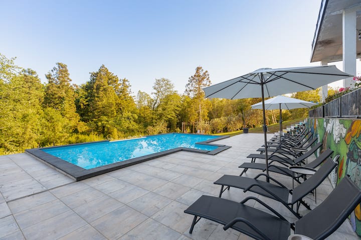 Tunamiliki nyumba ya likizo iliyo na bwawa la kuogelea karibu na katikati ya jiji (kilomita 4) na studio katikati ya mji.