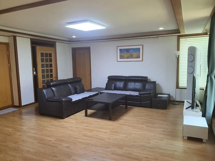 Sehemu yenye upana wa pyeong 50 inayofaa kwa ajili ya mapumziko ya utulivu huku ukifurahia chemchemi za maji moto na mazingira ya asili jijini