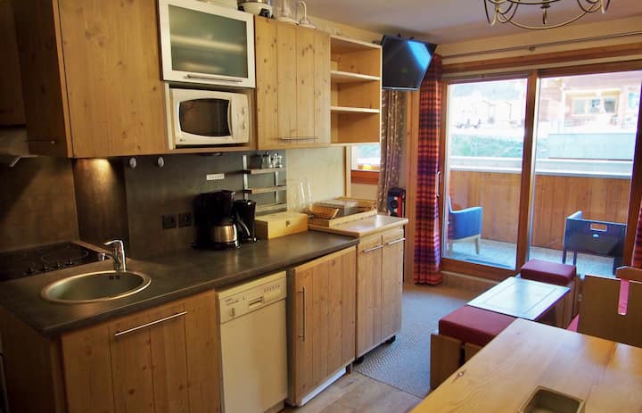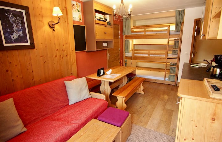 Hakuna haja ya kubeba skii zako: mteremko unaounganisha unapitia mbele ya makazi na kukupa ufikiaji rahisi wa eneo la kuteleza na mahali pa kukutania pa shule ya kuteleza. Kwa hivyo unaweza kuvaa na kuvua skii zako mbele ya makazi yako!