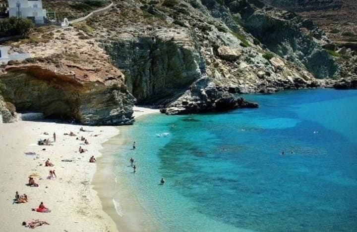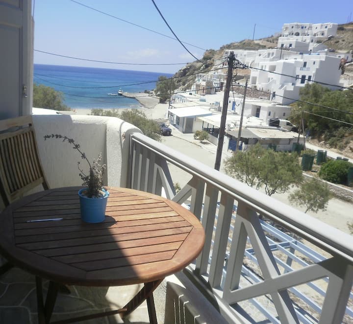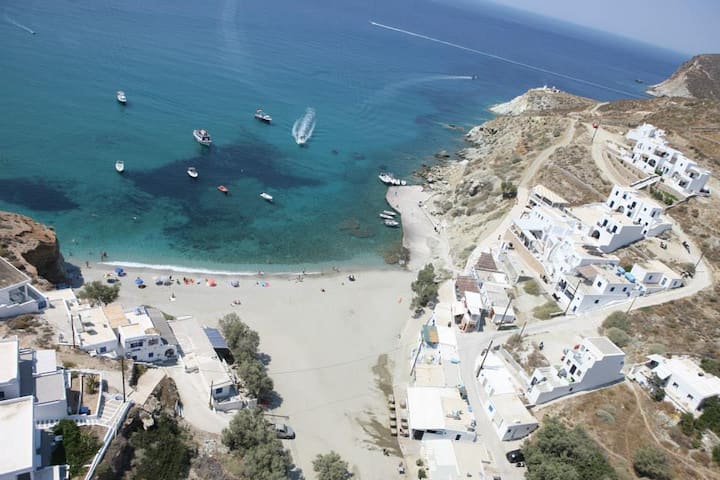 Kwenye pwani ya mchanga ya Agali tunakodisha fleti mbili nzuri na kukaribisha watu kutoka pande zote za ulimwengu! Pia, katika kijiji cha jadi cha Ano Meria tunakodisha nyumba mbili nzuri za mawe "Themonia", ambazo zilikarabatiwa na babu yangu, ambaye alikuwa mjenzi bora anayefanya kazi tu kwa mawe na mbinu za eneo husika.