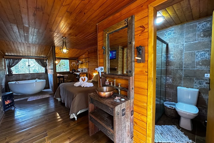 Cabana na hydromassage ya ndani na mwonekano mzuri wa msitu | Theme Viking | Cab 5