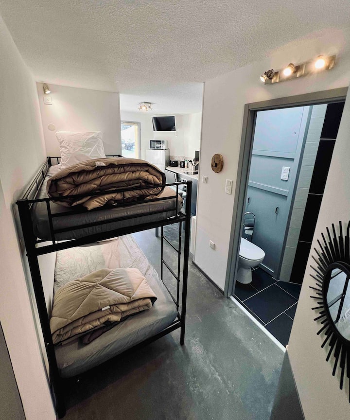 Mimi ni Anthony, nina umri wa miaka 26, ninaishi Aveyron (-12-), idara nzuri kwenye kifungu cha haha, na ninatoa kwa ajili ya kukodisha studio mbili zilizo na vifaa kamili, zilizo katikati ya risoti ya kuteleza kwenye barafu ya Super Lioran! (Cantal -15-)