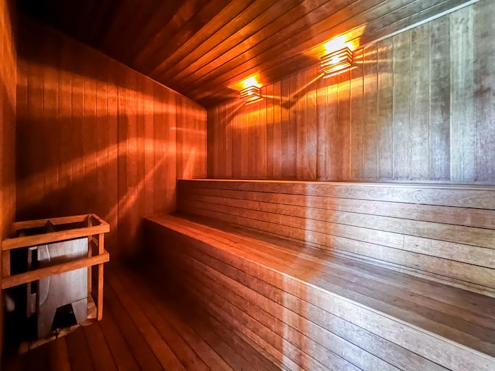 Starehe ukitumia bomba la mvua la nje na sauna.